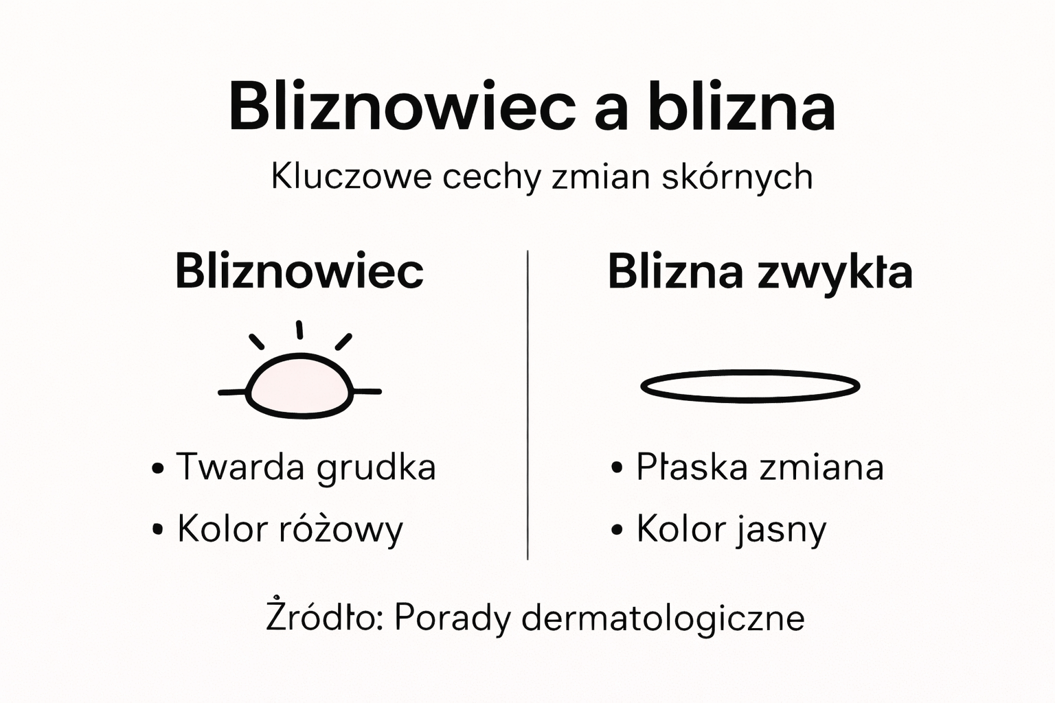 Oto porównanie typowych cech bliznowców i zwykłych blizn:
